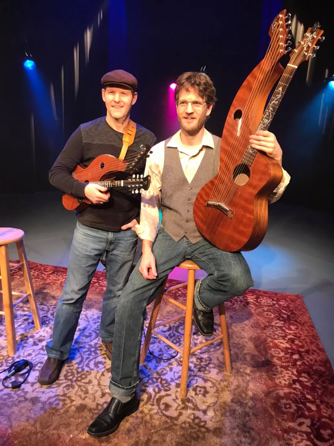 “Best known for designing the modern harp guitar, their company Tonedevil Guitars is the premiere U.S.A. made harp guitar manufacturer in over 100 years. Performing as the “Tonedevil Brothers” with a new collection of original songs and arrangements of western swing, bluegrass, blues, singer-songwriter, and Americana, Anthony Powell, who plays mandolin and sings, and his brother David, who accompanies exclusively playing the harp guitar, are entertaining and enlightening audiences with brotherly harmonies and a beautiful vintage sound. They appear regularly at the International Harp Guitar Gathering and throughout the western united States.”